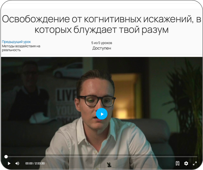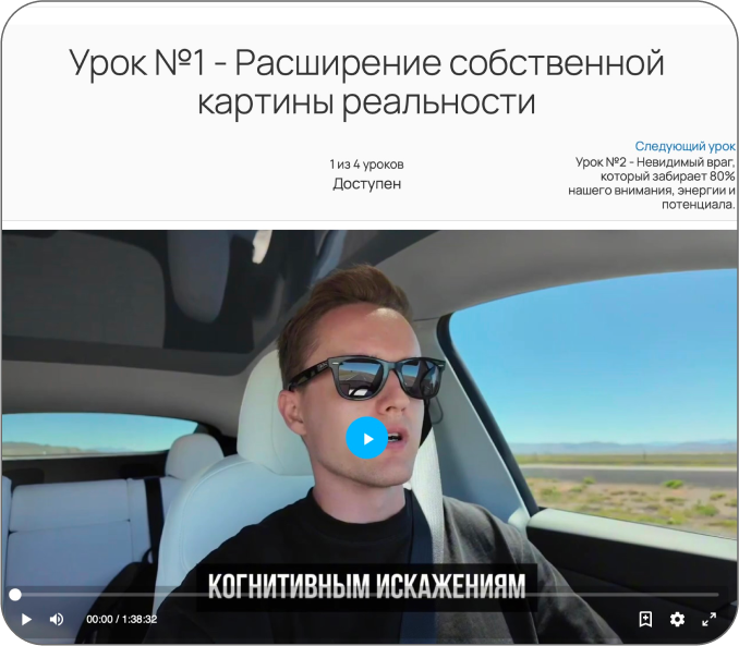 . В этом уроке ты освободишься от когнитивных искажений, которые держат тебя в ловушке старых убеждений. Ты научишься видеть мир без фильтров и принимать более точные и эффективные решения, что позволит осуществить быстрый переход на новый уровень жизни